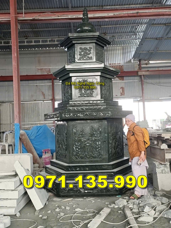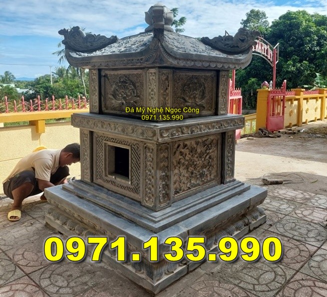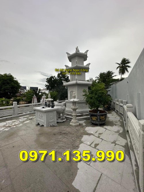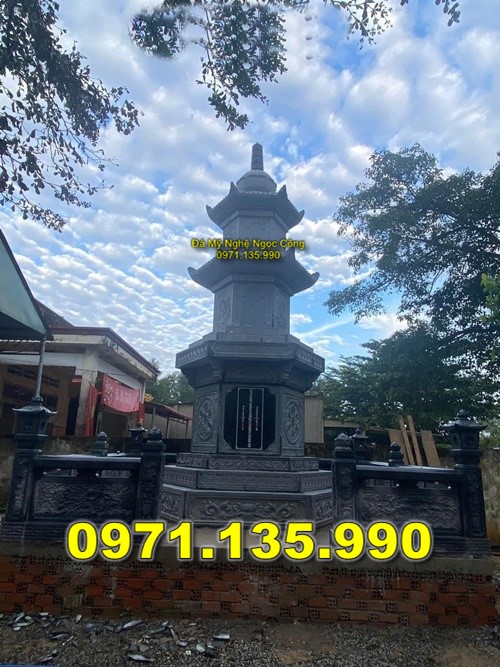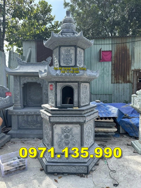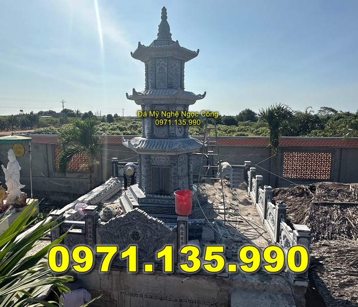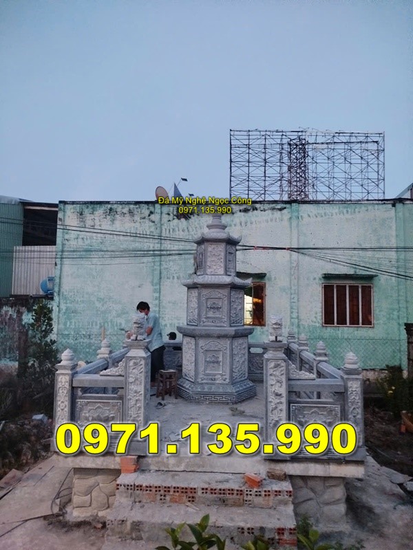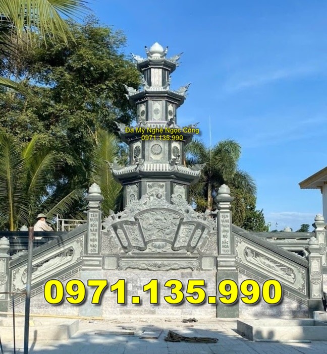 Mẫu Mộ Tháp Bằng Đá Đẹp bán Hậu Giang thường có thiết kế tỉ mỉ và sang trọng, kết hợp giữa yếu tố phong thủy và thẩm mỹ. Những mẫu mộ này không chỉ dùng để thờ cúng mà còn có thể trở thành một biểu tượng của sự tôn kính và bảo vệ cho người đã khuất. Dưới đây là một số đặc điểm chung của mẫu mộ tháp đá đẹp: