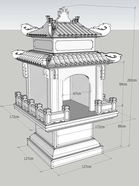 Mái che (nếu có): Thiết kế 1 mái, 2 mái hoặc 3 mái cong cổ truyền