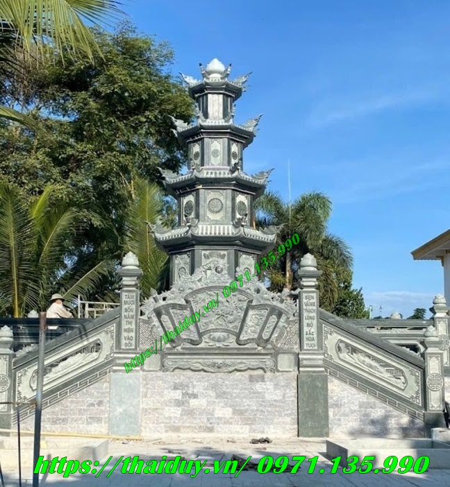 - Mẫu Mộ Tháp 7 Tầng Đá Granite: Thiết kế tháp với 7 tầng đá bóng, các chi tiết khắc hoa văn tinh xảo như rồng, phượng, và các họa tiết tượng trưng cho sự thăng tiến.