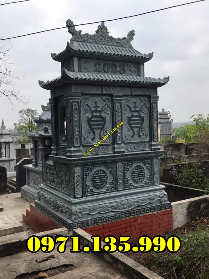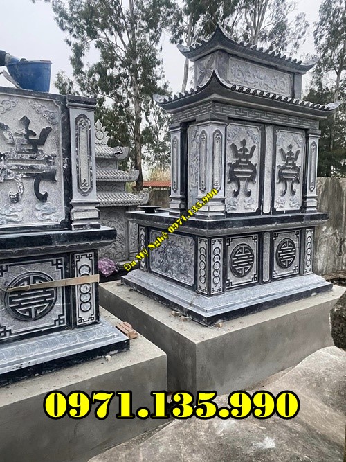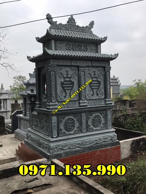 Mộ hai đao được thiết kế thu hút bởi 2 tầng mái từ những mẫu đơn giản cho tới dạng mái cong vút càng làm tăng thêm tính linh thiêng cho công trình. Không những vậy, tính thẩm mỹ của loại mộ này cũng được nâng tầm đẳng cấp hơn, tinh tế hơn trong những khu lăng mộ bằng đá.