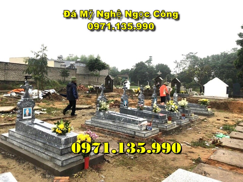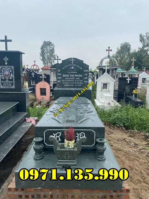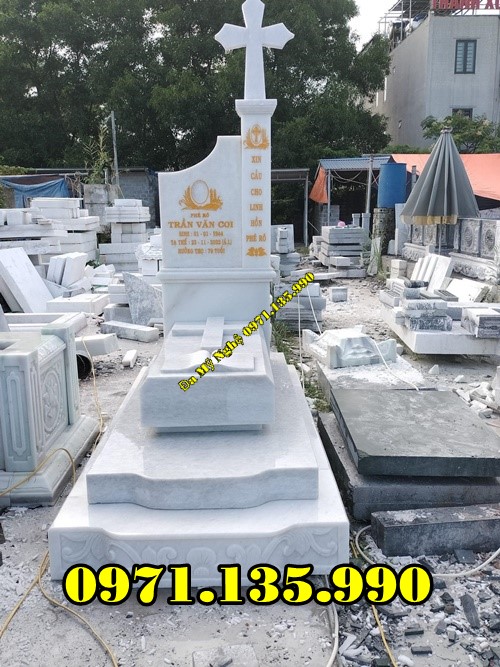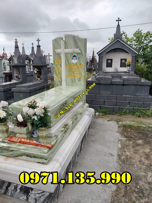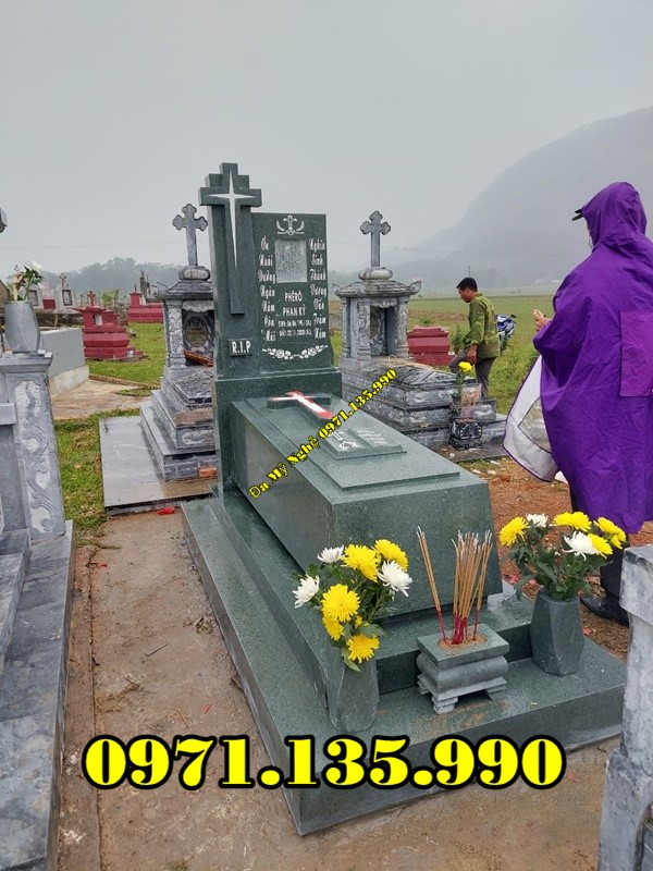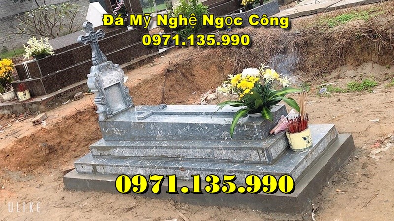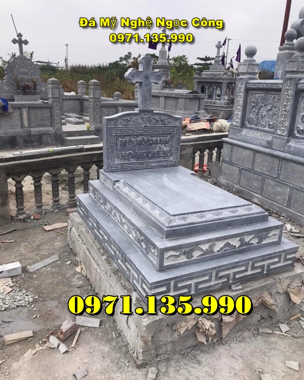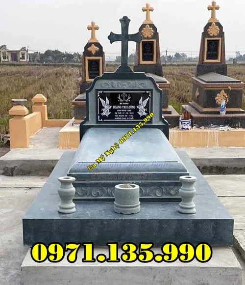 Mộ đá công giáo là mẫu mộ được làm dành riêng cho những người theo đạo Thiên Chúa giáo. Đặc điểm để nhận biết được mẫu mộ này là phía trên phần bia mộ có hình cây Thánh Giá và các hoa văn thường được điêu khắc là những họa tiết dành riêng cho những người theo đạo như: Thiên Thần, Kinh Thánh, Đức Mẹ Maria, Chúa Giêsu,…