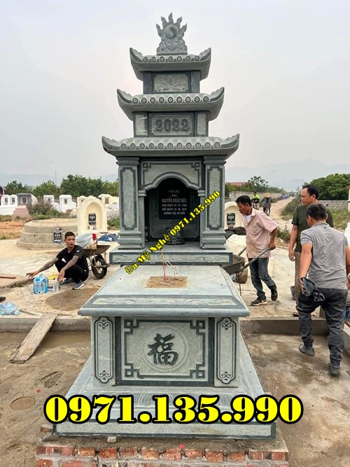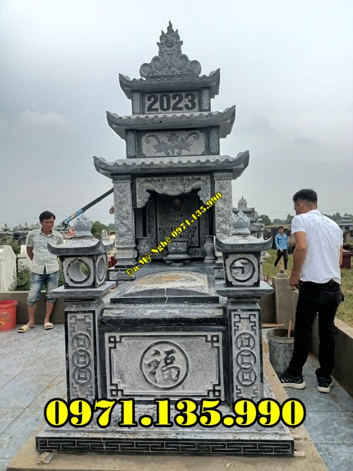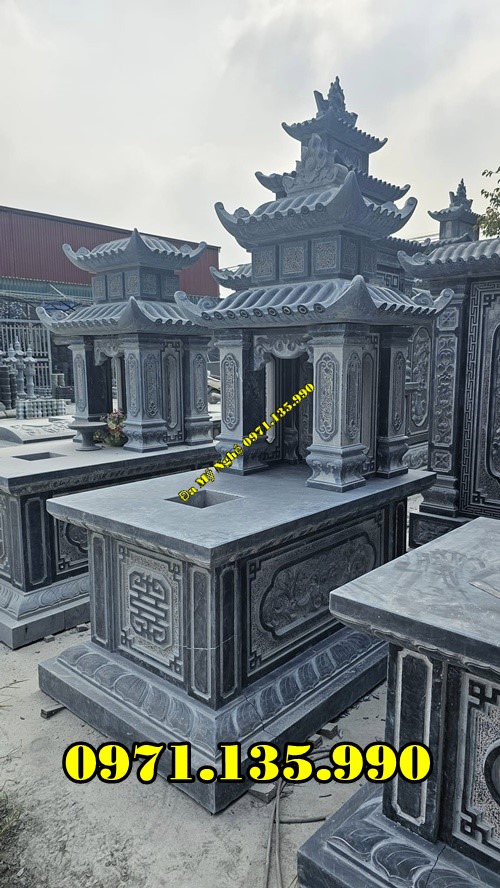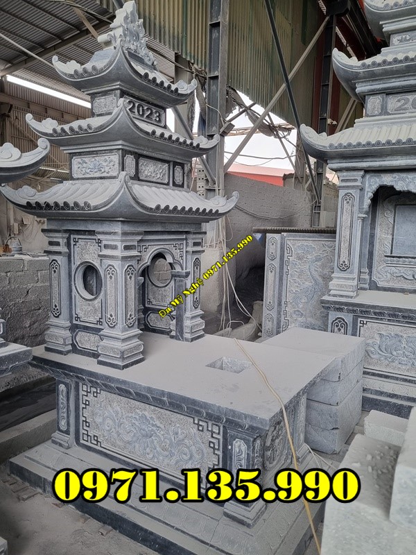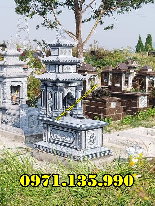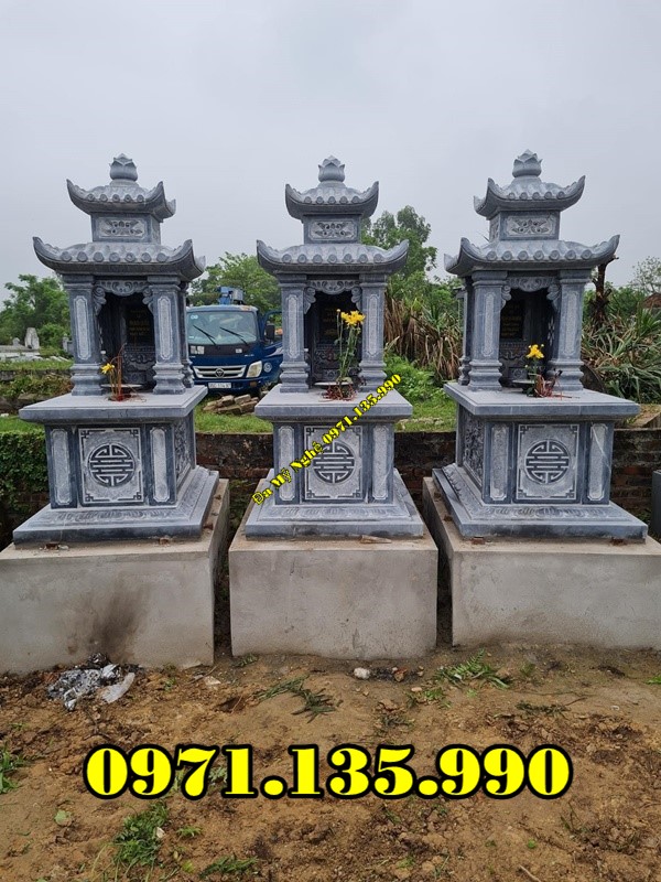 Mộ đá ba mái được thiết kế linh hoạt, đa dạng từ những mẫu mộ đơn hay mộ đôi với phần mái 3 tầng tạo nên điểm nhấn thú vị. Mẫu mộ này thường được sử dụng trong những khu lăng mộ dưới dạng mộ đơn nhiều hơn và có kích thước thu nhỏ hơn các mẫu mộ thông thường khác. Và như chúng ta được biết, loại đá được lựa chọn để chế tác những mẫu mồ này rất đa dạng nhưng vẫn luôn đảm bảo được độ bền chắc theo năm tháng sử dụng.