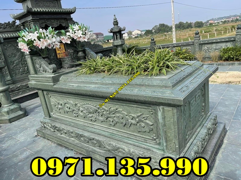 Nhắc đến mẫu lăng mộ đá xanh rêu ta có thể cảm nhận được nguyên vật liệu tạo nên ngôi mộ này từ đá xanh nguyên khối tự nhiên. Mẫu mộ này có thể được thiết kế thành nhiều kiểu khác nhau như: Mộ đôi, mộ đơn hay các mẫu mộ được đề cập phía trên. Nét đặc trưng trong từng ngôi mộ chế tác từ đá xanh là màu sắc tự nhiên vốn có. Chất lượng bền bỉ theo thời gian, không bị bào mòn và cũng không sợ va động mạnh.