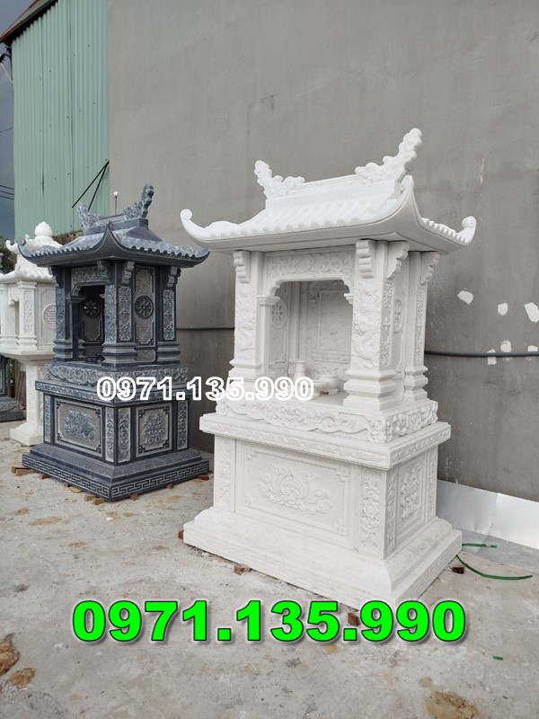 - Đặc điểm: Thiết kế có mái che, bảo vệ bàn thờ khỏi mưa nắng. Chạm khắc hoa văn phong phú, đẹp mắt.
