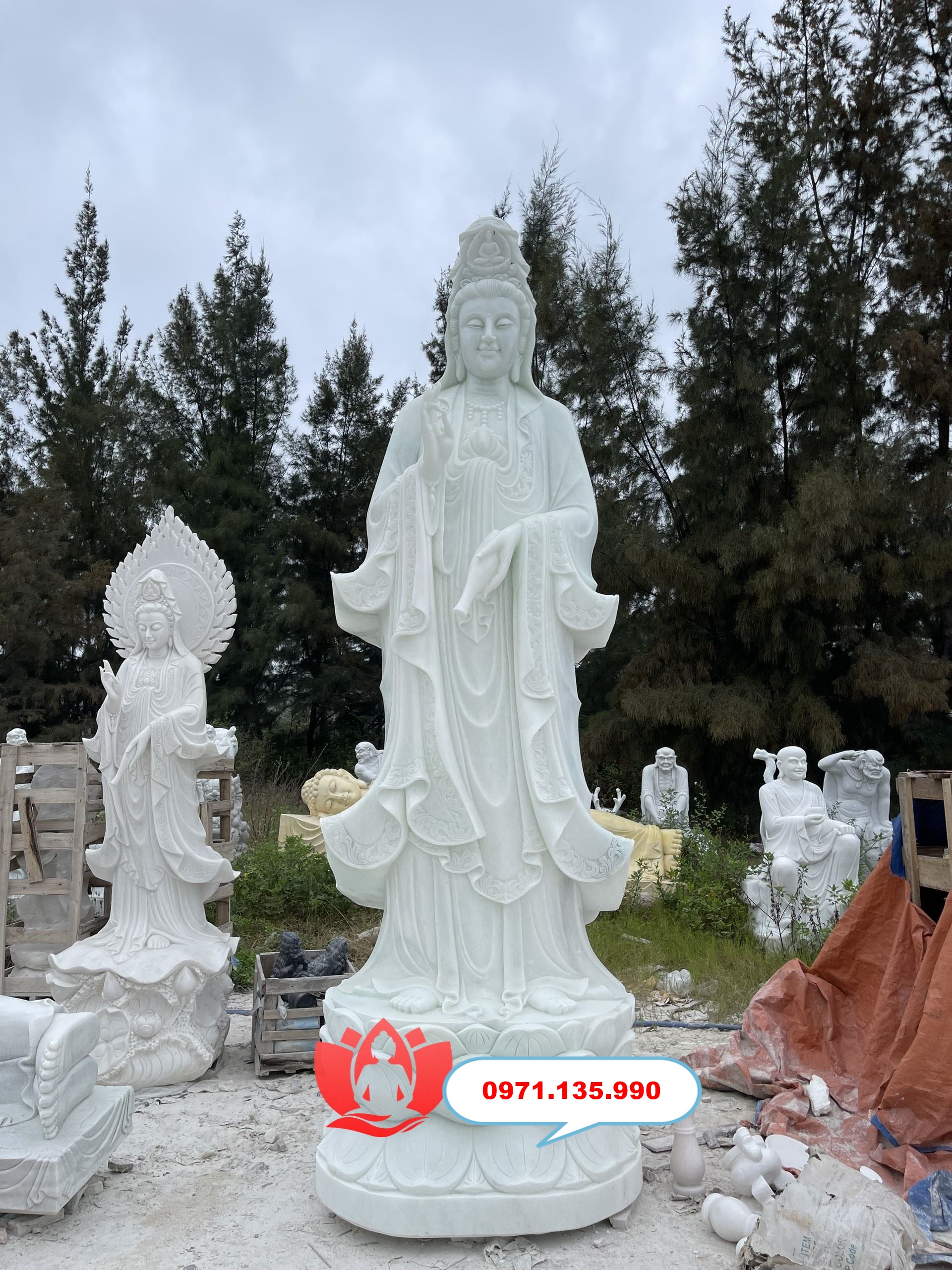 Tượng Quan Âm bằng đá cẩm thạch mang theo năng lượng dương mạnh mẽ, có tác dụng hóa giải nghiệp lực, giảm sát khí, đặc biệt khi đặt ở hướng tốt (Đông hoặc Đông Nam).