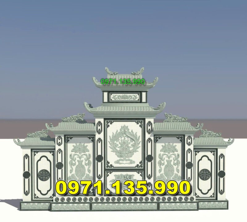 Am thờ – Lăng thờ có kích thước thiết kế là 367 x 107 x 320 bao gồm có cung thờ chính và cánh gió hai bên. Đây là mẫu lăng thờ có kích thước khá lớn phù hợp với các khu lăng mộ nghĩa trang gia đình có diện tích xây dựng rộng. Các số đo đều là số đẹp mang lại may mắn và tài lộc cho con cháu.