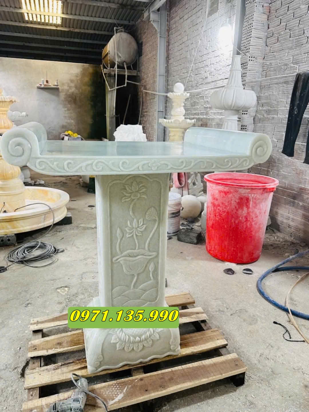- Thiết kế truyền thống: Bàn thờ thiên bằng đá thường có phần đế, trụ, và mặt bàn chạm khắc hoa văn như rồng, phượng, hoa sen, hoặc họa tiết mây trời.