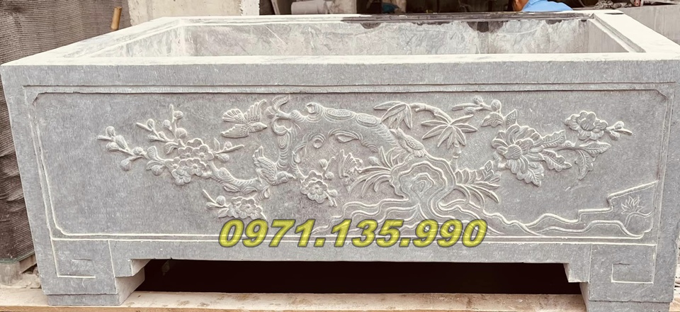 | Chậu dài để sân vườn | 100 x 40 x 50 cm | Đá xanh/đá vàng | 25.000.000 – 90.000.000 VNĐ |