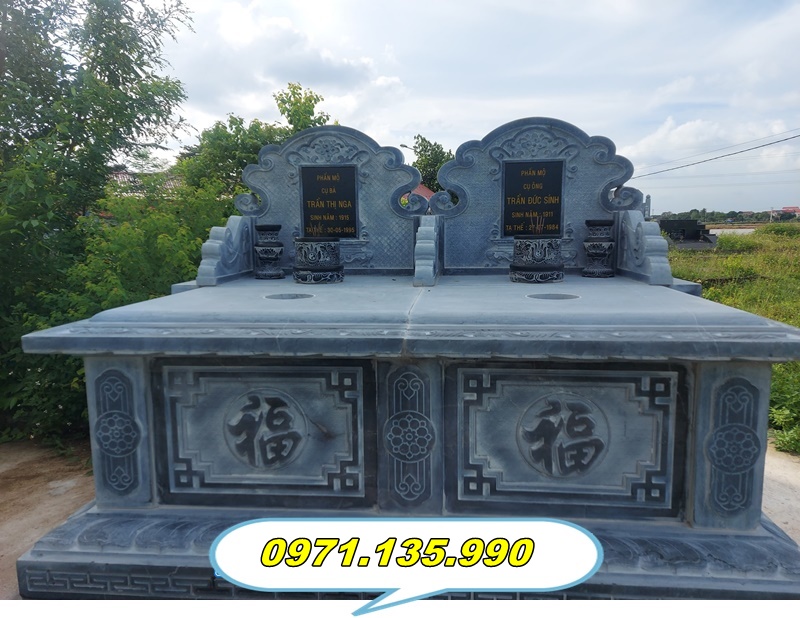 Kích thước mộ đá đôi, nhà mồ song thân, chụp mộ đôi : 147×167(cm), 167×167(cm), 167×76(cm), 167×197(cm), 176×197(cm),197×215 (cm), 235×275(cm)