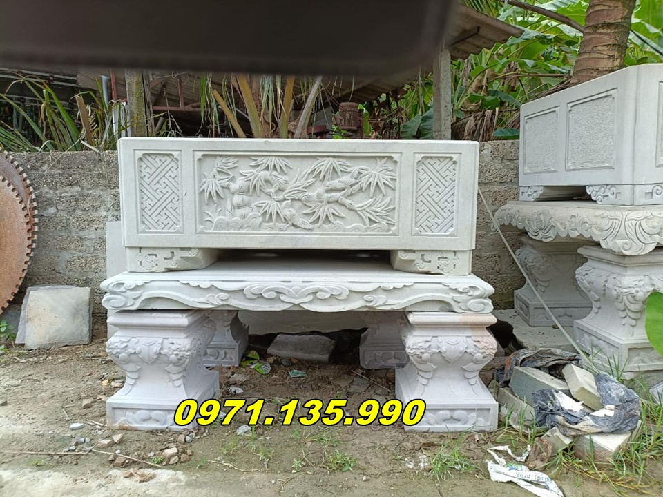 Có thể làm từ đá xanh, đá trắng, hoặc đá cẩm thạch.