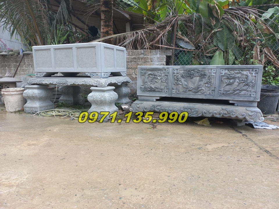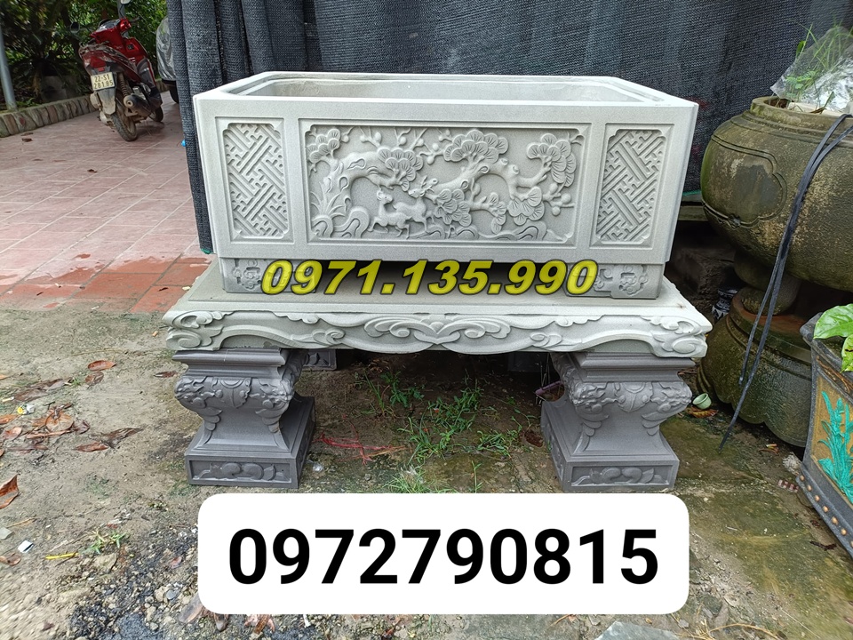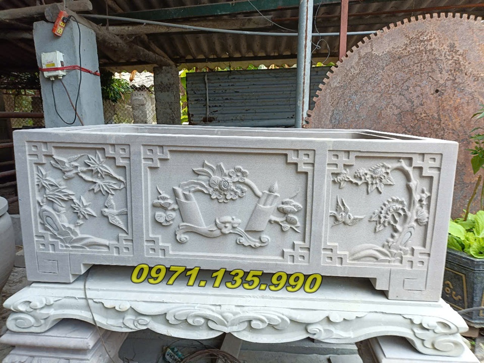 | Chậu dài để sân vườn | 100 x 40 x 50 cm | Đá xanh/đá vàng | 25.000.000 – 90.000.000 VNĐ |