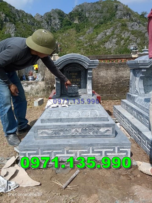 - Bia mộ đá xanh: Thường được khắc thông tin về người đã khuất như tên, ngày sinh, ngày mất, và các dòng chữ tưởng niệm. Bia mộ cũng thường được làm từ đá nguyên khối và được gắn cố định vào phần mộ chính.