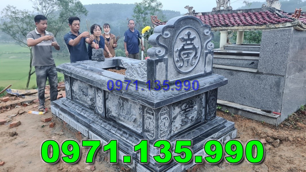 127 Mộ đá nguyên khối đẹp bán nghệ an Kích thước mộ đá nguyên khối, mộ nguyên khối đơn giản, mộ đá đôi nguyên khối, giá mộ đá nguyên khối : là một loại mộ được chế tác từ một tảng đá lớn, thường là đá granite hoặc đá cẩm thạch. Những tảng đá này được khai thác và cắt gọt để tạo thành mộ mà không cần ghép nối các mảnh đá nhỏ lại với nhau. Điều này làm cho mộ đá nguyên khối trở nên bền chắc và có khả năng chống lại sự tác động của thời tiết và thời gian tốt hơn so với các loại mộ được làm từ các vật liệu khác.