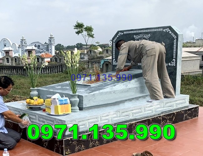 - Bia mộ đá xanh: Thường được khắc thông tin về người đã khuất như tên, ngày sinh, ngày mất, và các dòng chữ tưởng niệm. Bia mộ cũng thường được làm từ đá nguyên khối và được gắn cố định vào phần mộ chính.