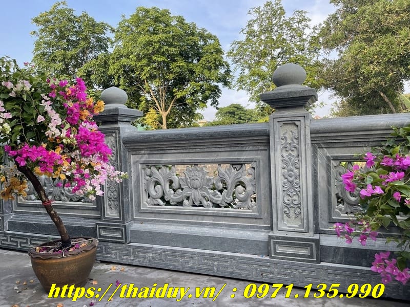 Lan can đá không chỉ có chức năng bảo vệ công trình mà còn đóng vai trò quan trọng trong việc tôn lên vẻ uy nghiêm, trang trọng cho các khu vực tâm linh. Với những hoa văn được chạm khắc tinh xảo như tứ quý, tứ linh, hoa sen, hay các chữ Hán như Phúc – Lộc – Thọ, lan can đá thể hiện sự tôn kính đối với tổ tiên, mong ước bình an, may mắn cho gia đình và cộng đồng.