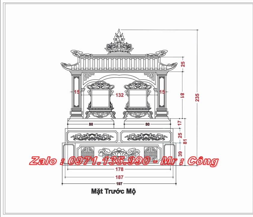 Lưu ý: Nên lấy kích thước theo thước Lỗ Ban 39 hoặc 52, cung Đinh – Vượng – Hưng – Tài để mang lại may mắn cho con cháu.