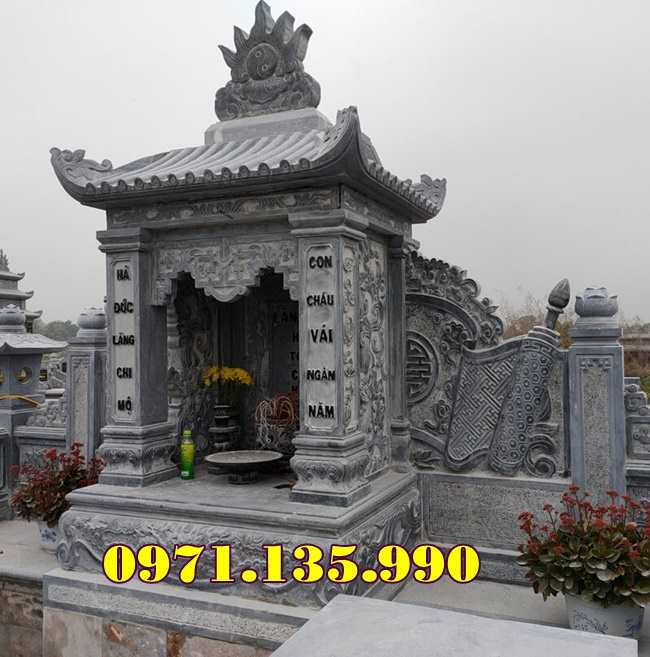 Mẫu lăng thờ chung – Am thờ – Củng Thờ – Kỳ Đài Thờ – Lầu Thờ bằng đá đẹp nhất hiện nay với mẫu đơn giản một mái, hai hay ba mái che. Mẫu lăng thờ đá thường được chọn kích thước dựa trên số đỏ cung hoàng đạo trên thước lỗ ban.