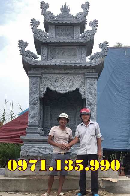 Mẫu lăng thờ chung – Am thờ – Củng Thờ – Kỳ Đài Thờ – Lầu Thờ bằng đá đẹp nhất hiện nay với mẫu đơn giản một mái, hai hay ba mái che. Mẫu lăng thờ đá thường được chọn kích thước dựa trên số đỏ cung hoàng đạo trên thước lỗ ban.