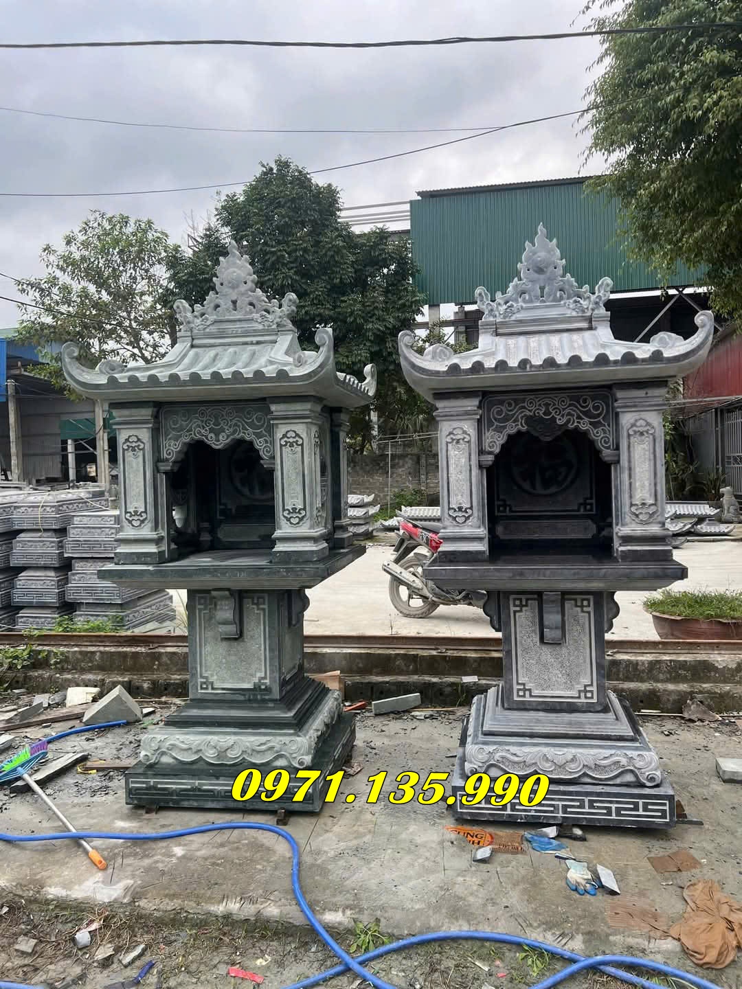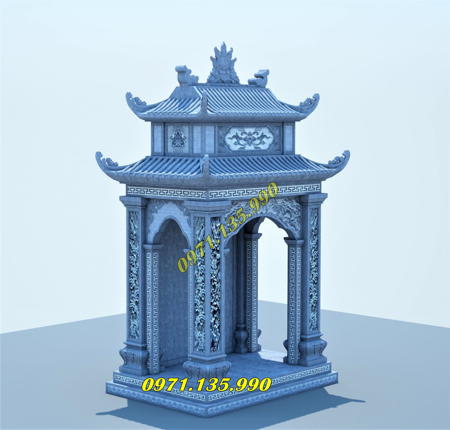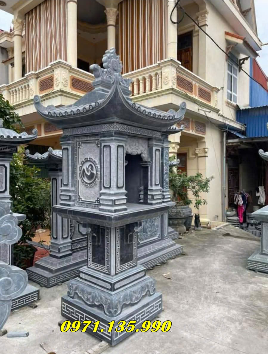 Mẫu lăng thờ chung – Am thờ – Củng Thờ – Kỳ Đài Thờ – Lầu Thờ bằng đá đẹp nhất hiện nay với mẫu đơn giản một mái, hai hay ba mái che. Mẫu lăng thờ đá thường được chọn kích thước dựa trên số đỏ cung hoàng đạo trên thước lỗ ban.