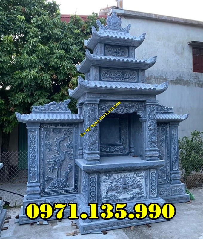 Mẫu lăng thờ chung – Am thờ – Củng Thờ – Kỳ Đài Thờ – Lầu Thờ bằng đá đẹp nhất hiện nay với mẫu đơn giản một mái, hai hay ba mái che. Mẫu lăng thờ đá thường được chọn kích thước dựa trên số đỏ cung hoàng đạo trên thước lỗ ban.