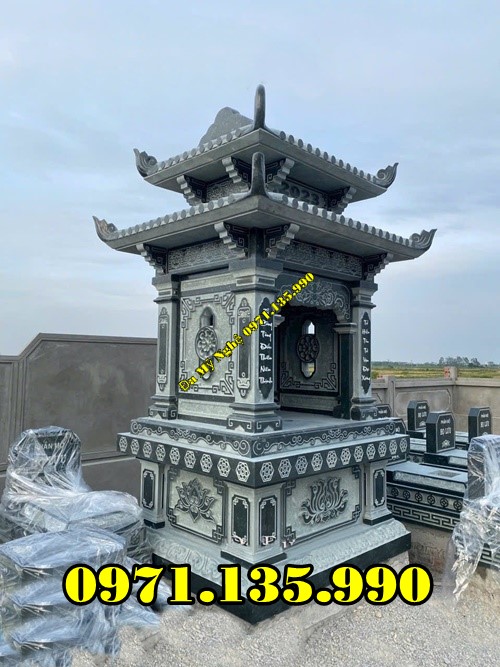 Mẫu lăng thờ chung – Am thờ – Củng Thờ – Kỳ Đài Thờ – Lầu Thờ bằng đá đẹp nhất hiện nay với mẫu đơn giản một mái, hai hay ba mái che. Mẫu lăng thờ đá thường được chọn kích thước dựa trên số đỏ cung hoàng đạo trên thước lỗ ban.