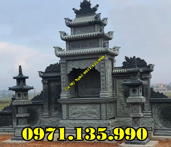 Mẫu lăng thờ chung – Am thờ – Củng Thờ – Kỳ Đài Thờ – Lầu Thờ bằng đá đẹp nhất hiện nay với mẫu đơn giản một mái, hai hay ba mái che. Mẫu lăng thờ đá thường được chọn kích thước dựa trên số đỏ cung hoàng đạo trên thước lỗ ban.