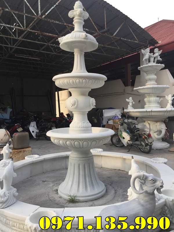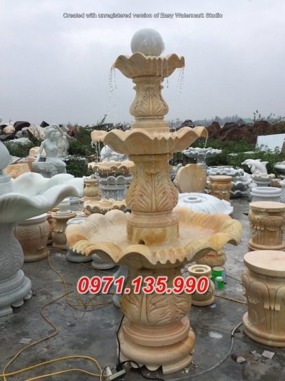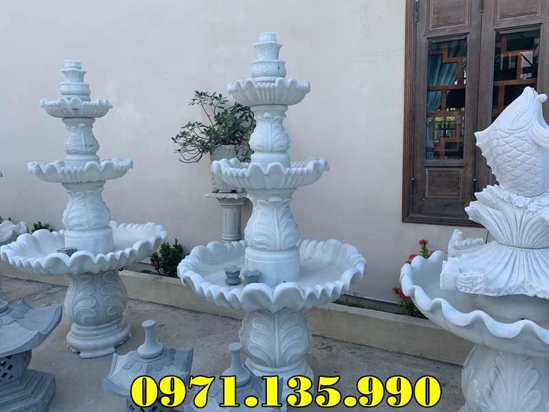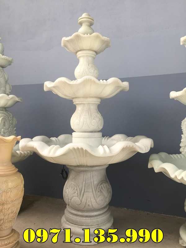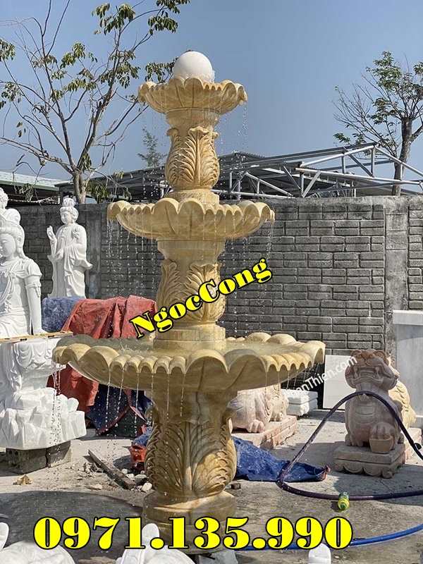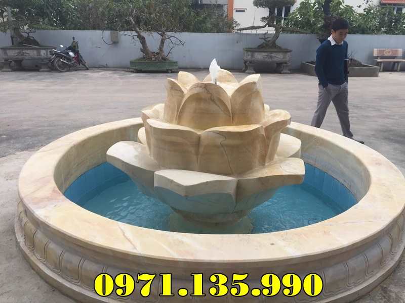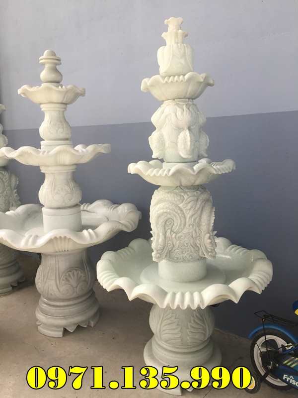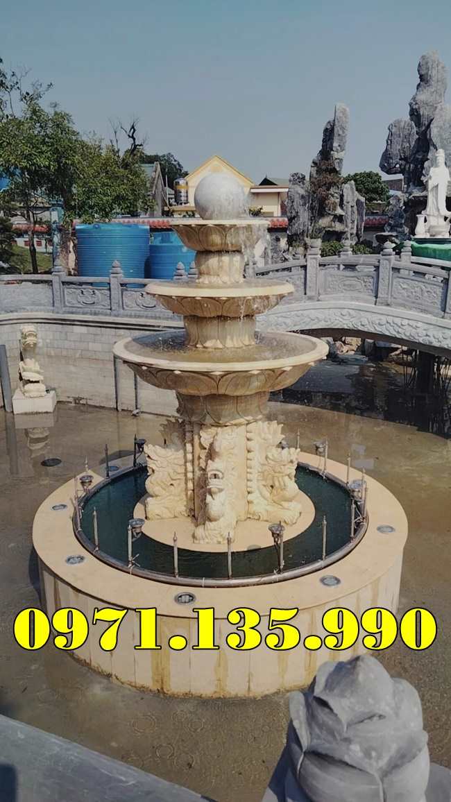 – Đài phun nước sân vườn biệt thự công ty khách sạn cao 2,35m đĩa lớn 1,25m có giá khoảng 55 – 75 triệu;