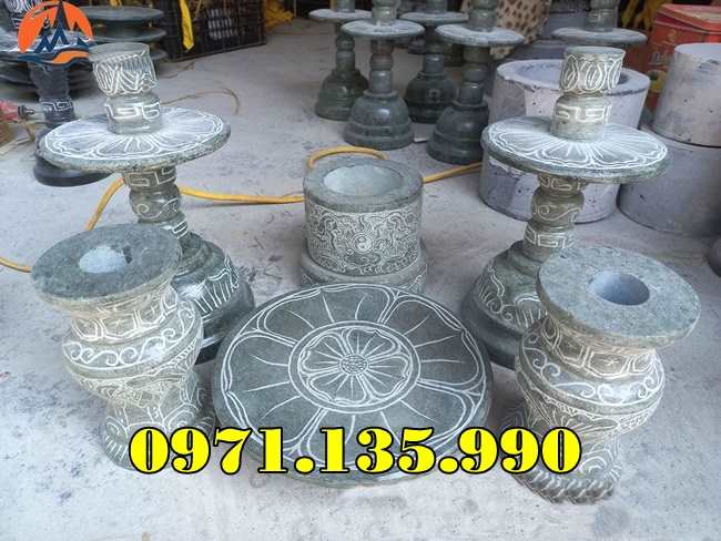 Loại đá được dùng phổ biến đó là đá Ninh Bình – Đá Non Nước – Đá Nghệ An – Đá Bình Định- Đá Phú Yên- Đá Ấn Độ Nhập Khẩu. Ưu điểm lớn nhất của nó là độc ứng cao, hạn chế thấm nước và dễ dàng chạm khắc hoa văn. Đặc biệt là với gam màu đá xanh đen cổ kính, hợp phong thủy thờ cúng.