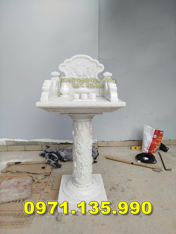 Bàn thờ thiên đá trắng: Với vẻ đẹp tinh khôi, mẫu bàn thờ đá trắng không chỉ tạo nên không gian trang trọng, tinh tế mà còn mang đến sự may mắn, thanh khiết cho gia đình.