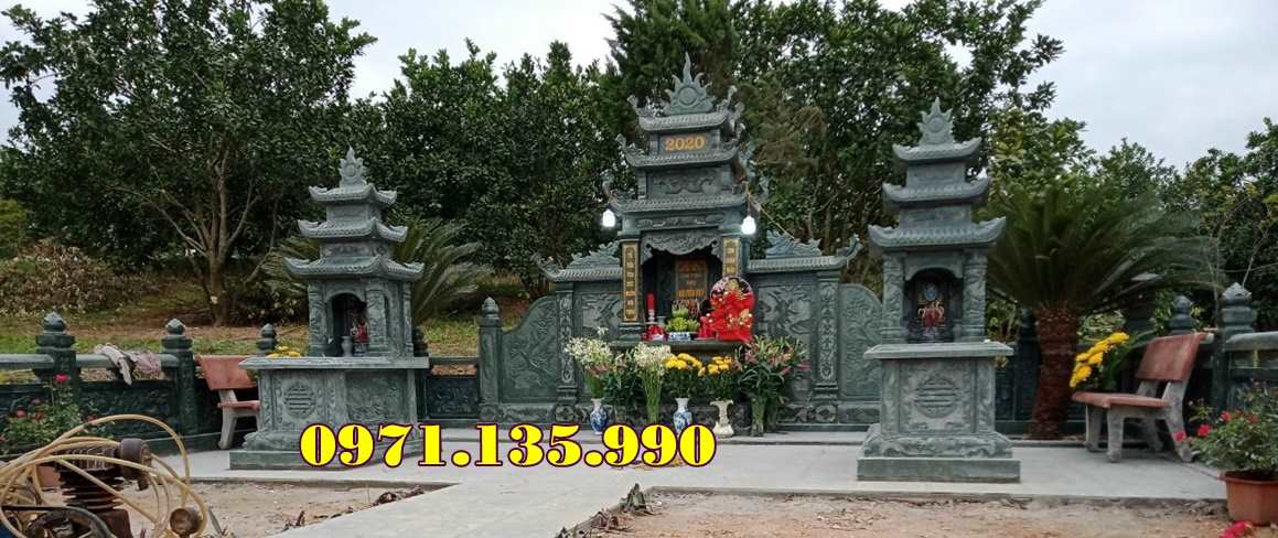 Mẫu lăng thờ chung – Am thờ – Củng Thờ – Kỳ Đài Thờ – Lầu Thờ bằng đá đẹp nhất hiện nay với mẫu đơn giản một mái, hai hay ba mái che. Mẫu lăng thờ đá thường được chọn kích thước dựa trên số đỏ cung hoàng đạo trên thước lỗ ban.