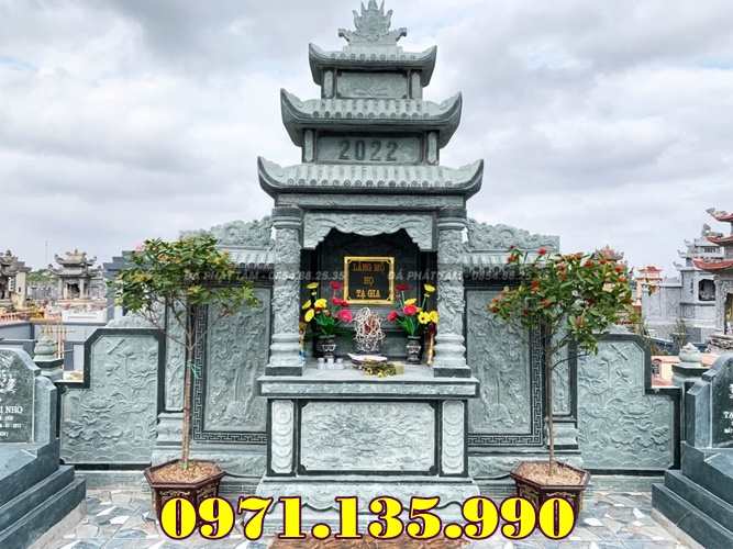 - Mô tả: Mộ đá 3 mái là kiểu thiết kế lớn với ba tầng mái chồng lên nhau, mang đậm nét truyền thống. Mộ này thường được chạm khắc với nhiều hoa văn phong thủy, biểu tượng cho sự bảo vệ và tôn vinh người đã khuất.