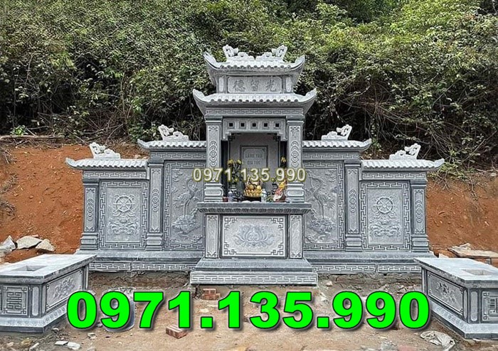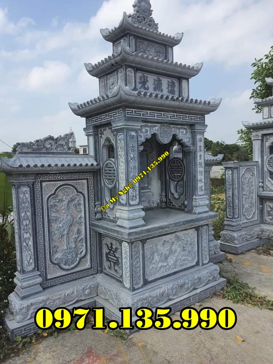 Mẫu lăng thờ chung – Am thờ – Củng Thờ – Kỳ Đài Thờ – Lầu Thờ bằng đá đẹp nhất hiện nay với mẫu đơn giản một mái, hai hay ba mái che. Mẫu lăng thờ đá thường được chọn kích thước dựa trên số đỏ cung hoàng đạo trên thước lỗ ban.