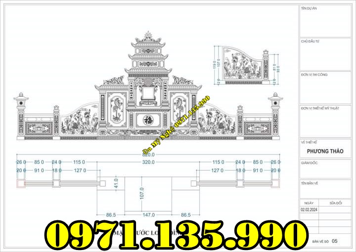 Kích thước 320x107x320 (cm) mang ý nghĩa vượng tài, thêm phúc