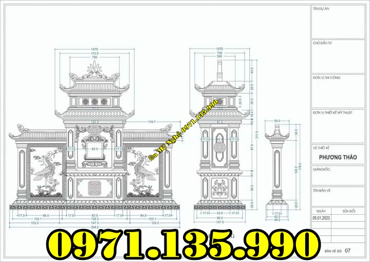 Kích thước am thờ – lăng thờ – cây hương – miếu – kỳ đài