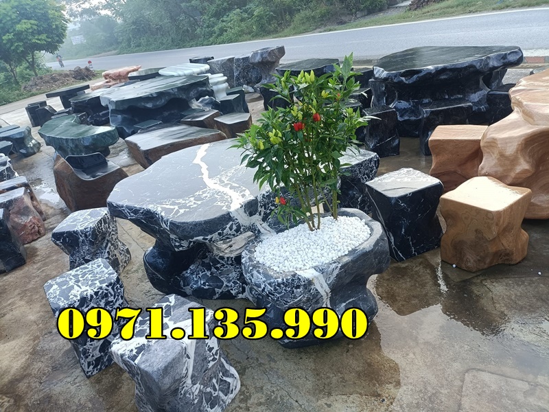 Bàn ghế sân vườn biệt thự bằng đá tự nhiên đen