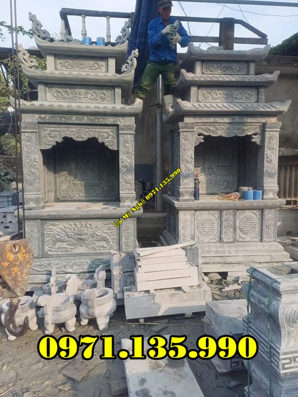 Mẫu lăng thờ chung – Am thờ – Củng Thờ – Kỳ Đài Thờ – Lầu Thờ bằng đá đẹp nhất hiện nay với mẫu đơn giản một mái, hai hay ba mái che. Mẫu lăng thờ đá thường được chọn kích thước dựa trên số đỏ cung hoàng đạo trên thước lỗ ban.