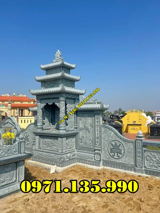 Mẫu lăng thờ chung – Am thờ – Củng Thờ – Kỳ Đài Thờ – Lầu Thờ bằng đá đẹp nhất hiện nay với mẫu đơn giản một mái, hai hay ba mái che. Mẫu lăng thờ đá thường được chọn kích thước dựa trên số đỏ cung hoàng đạo trên thước lỗ ban.