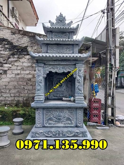 Mẫu lăng thờ chung – Am thờ – Củng Thờ – Kỳ Đài Thờ – Lầu Thờ bằng đá đẹp nhất hiện nay với mẫu đơn giản một mái, hai hay ba mái che. Mẫu lăng thờ đá thường được chọn kích thước dựa trên số đỏ cung hoàng đạo trên thước lỗ ban.