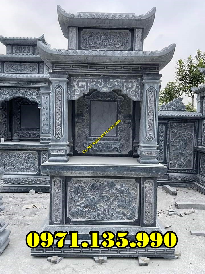 Mẫu lăng thờ chung – Am thờ – Củng Thờ – Kỳ Đài Thờ – Lầu Thờ bằng đá đẹp nhất hiện nay với mẫu đơn giản một mái, hai hay ba mái che. Mẫu lăng thờ đá thường được chọn kích thước dựa trên số đỏ cung hoàng đạo trên thước lỗ ban.