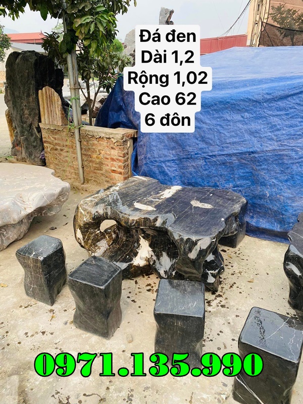 Bàn ghế sân vườn biệt thự bằng đá tự nhiên đen