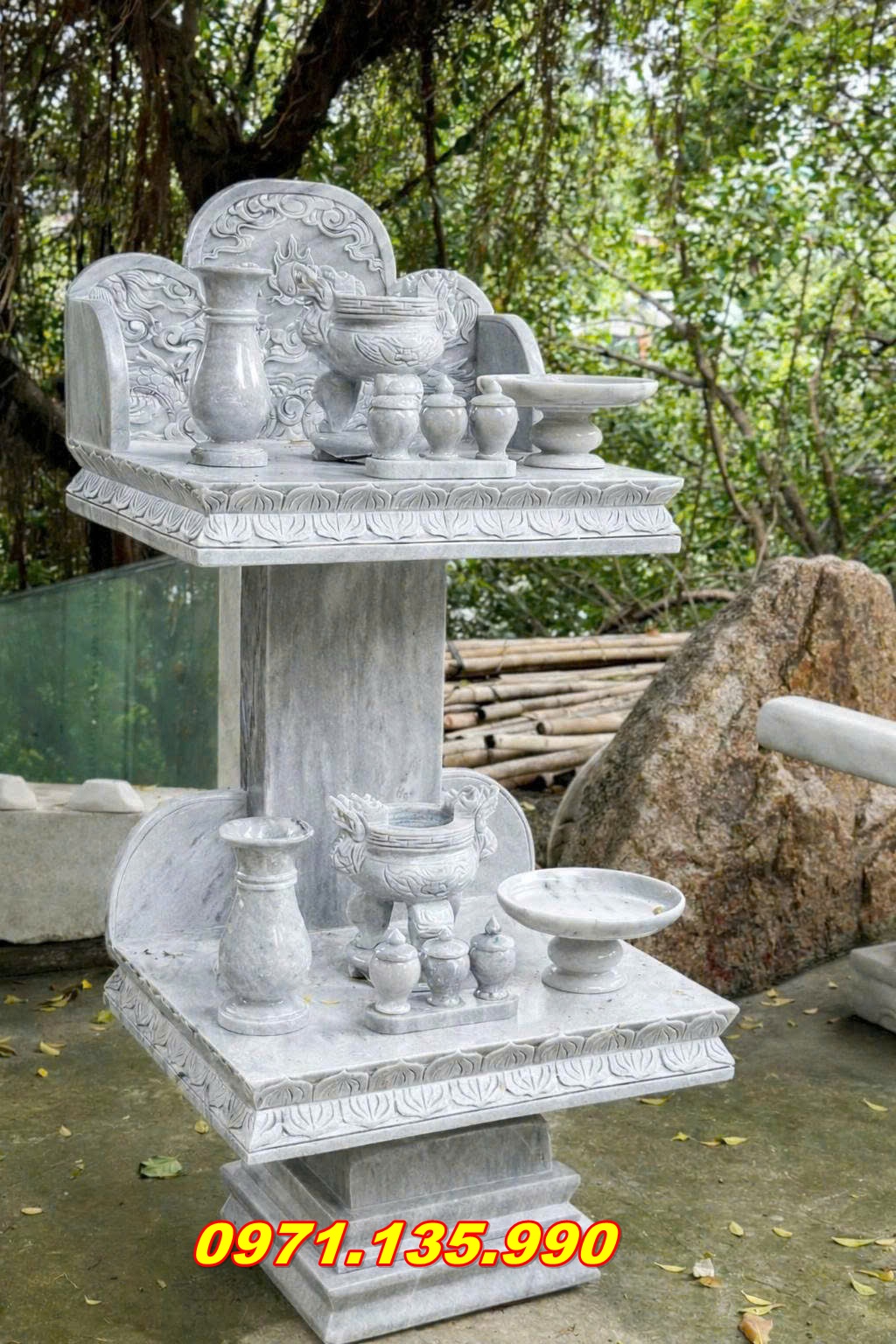 Cơ sở ĐÁ MỸ NGHỆ NGỌC CÔNG chuyên sản xuất và cung cấp bàn thờ thiên đá ngoài trời giá xưởng, nhận giao hàng và lắp đặt tận nơi toàn TP.HCM.