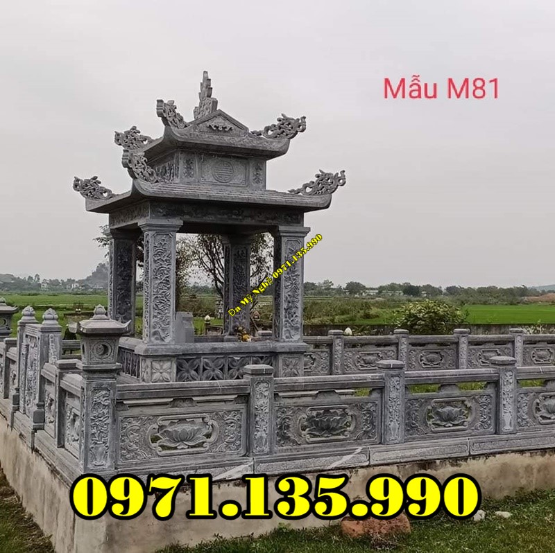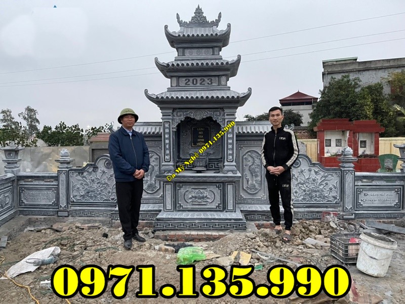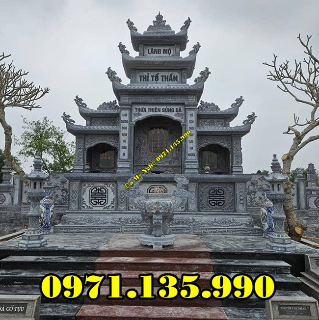 Mẫu lăng thờ chung – Am thờ – Củng Thờ – Kỳ Đài Thờ – Lầu Thờ bằng đá đẹp nhất hiện nay với mẫu đơn giản một mái, hai hay ba mái che. Mẫu lăng thờ đá thường được chọn kích thước dựa trên số đỏ cung hoàng đạo trên thước lỗ ban.