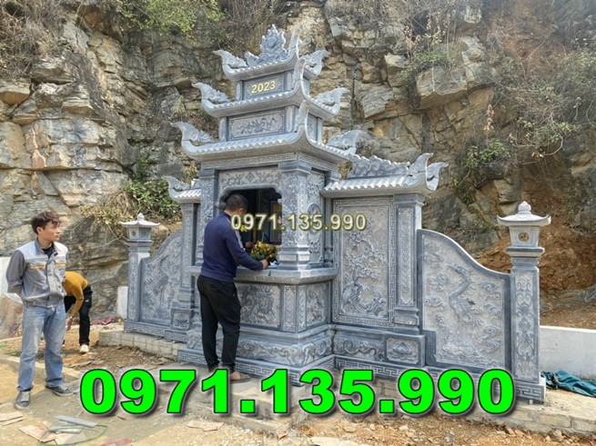 Mẫu lăng thờ chung – Am thờ – Củng Thờ – Kỳ Đài Thờ – Lầu Thờ bằng đá đẹp nhất hiện nay với mẫu đơn giản một mái, hai hay ba mái che. Mẫu lăng thờ đá thường được chọn kích thước dựa trên số đỏ cung hoàng đạo trên thước lỗ ban.