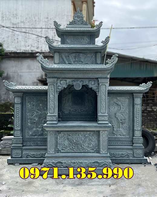 Mẫu lăng thờ chung – Am thờ – Củng Thờ – Kỳ Đài Thờ – Lầu Thờ bằng đá đẹp nhất hiện nay với mẫu đơn giản một mái, hai hay ba mái che. Mẫu lăng thờ đá thường được chọn kích thước dựa trên số đỏ cung hoàng đạo trên thước lỗ ban.