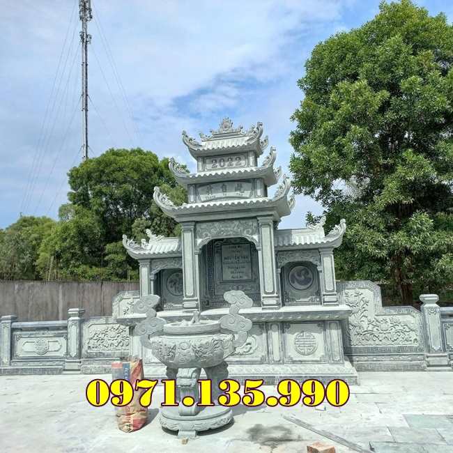 Mẫu lăng thờ chung – Am thờ – Củng Thờ – Kỳ Đài Thờ – Lầu Thờ bằng đá đẹp nhất hiện nay với mẫu đơn giản một mái, hai hay ba mái che. Mẫu lăng thờ đá thường được chọn kích thước dựa trên số đỏ cung hoàng đạo trên thước lỗ ban.