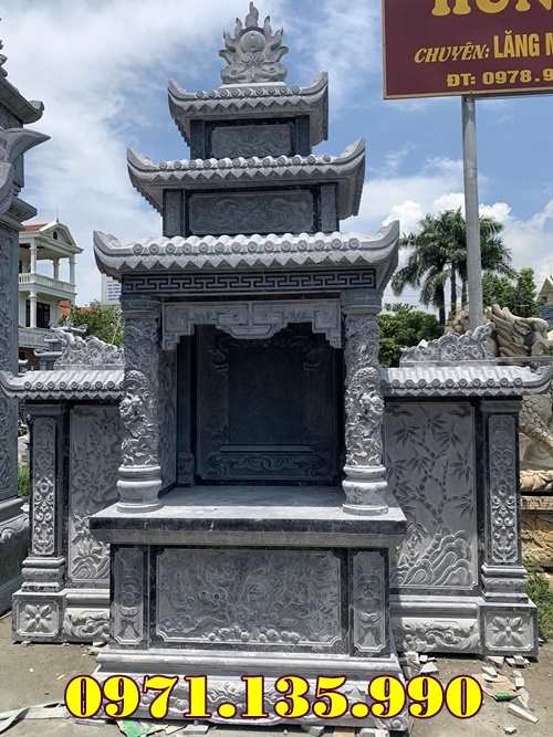 Mẫu lăng thờ chung – Am thờ – Củng Thờ – Kỳ Đài Thờ – Lầu Thờ bằng đá đẹp nhất hiện nay với mẫu đơn giản một mái, hai hay ba mái che. Mẫu lăng thờ đá thường được chọn kích thước dựa trên số đỏ cung hoàng đạo trên thước lỗ ban.