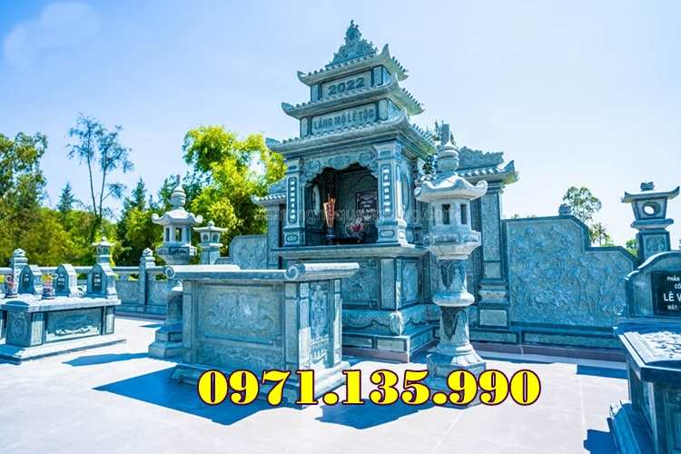 Mẫu lăng thờ chung – Am thờ – Củng Thờ – Kỳ Đài Thờ – Lầu Thờ bằng đá đẹp nhất hiện nay với mẫu đơn giản một mái, hai hay ba mái che. Mẫu lăng thờ đá thường được chọn kích thước dựa trên số đỏ cung hoàng đạo trên thước lỗ ban.