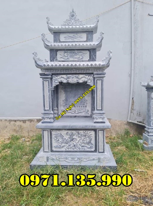 Mẫu lăng thờ chung – Am thờ – Củng Thờ – Kỳ Đài Thờ – Lầu Thờ bằng đá đẹp nhất hiện nay với mẫu đơn giản một mái, hai hay ba mái che. Mẫu lăng thờ đá thường được chọn kích thước dựa trên số đỏ cung hoàng đạo trên thước lỗ ban.