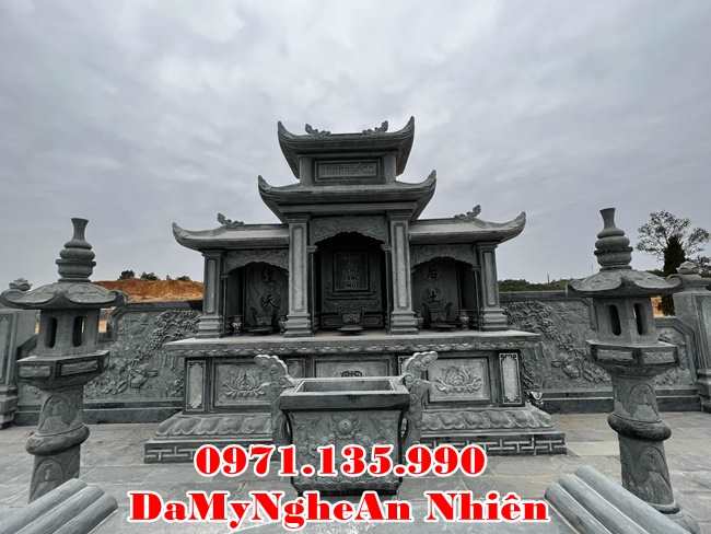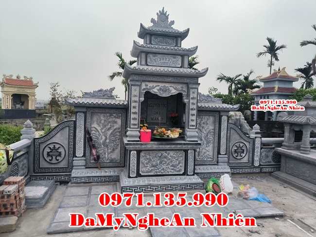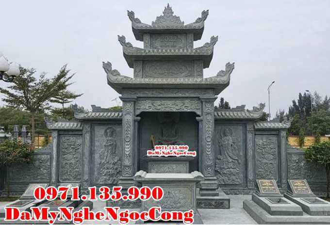 Mẫu lăng thờ chung – Am thờ – Củng Thờ – Kỳ Đài Thờ – Lầu Thờ bằng đá đẹp nhất hiện nay với mẫu đơn giản một mái, hai hay ba mái che. Mẫu lăng thờ đá thường được chọn kích thước dựa trên số đỏ cung hoàng đạo trên thước lỗ ban.