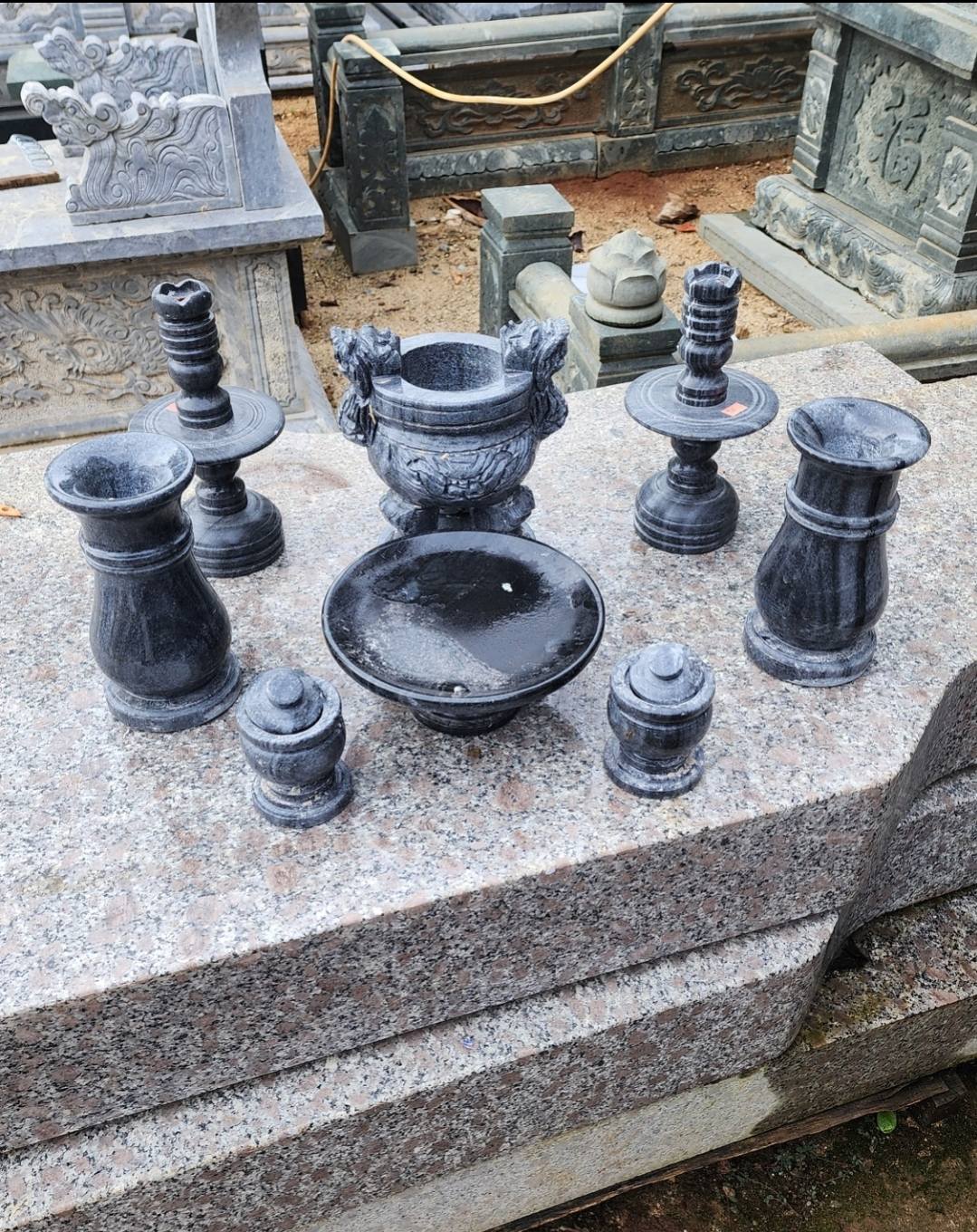Loại đá được dùng phổ biến đó là đá Ninh Bình – Đá Non Nước – Đá Nghệ An – Đá Bình Định- Đá Phú Yên- Đá Ấn Độ Nhập Khẩu. Ưu điểm lớn nhất của nó là độc ứng cao, hạn chế thấm nước và dễ dàng chạm khắc hoa văn. Đặc biệt là với gam màu đá xanh đen cổ kính, hợp phong thủy thờ cúng.